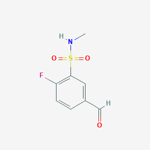 The mechanism of action of 2-Fluoro-5-formyl-N-methylbenzene-1-sulfonamide involves its interaction with specific molecular targets. The formyl group can form covalent bonds with nucleophilic sites on proteins or enzymes, potentially altering their function. The sulfonamide group can interact with biological molecules through hydrogen bonding and electrostatic interactions, influencing various biochemical pathways.