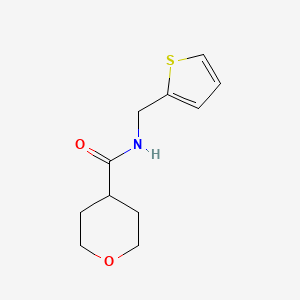 Synthetic Routes and Reaction Conditions: The synthesis of N-(thiophen-2-ylmethyl)tetrahydro-2H-pyran-4-carboxamide typically involves the reaction of thiophen-2-ylmethylamine with tetrahydro-2H-pyran-4-carboxylic acid. The reaction is usually carried out in the presence of coupling agents such as EDCI (1-ethyl-3-(3-dimethylaminopropyl)carbodiimide) and HOBt (1-hydroxybenzotriazole) to facilitate the formation of the amide bond .