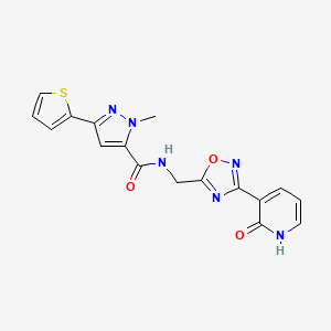 1-methyl-N-((3-(2-oxo-1,2-dihydropyridin-3-yl)-1,2,4-oxadiazol-5-yl)methyl)-3-(thiophen-2-yl)-1H-pyrazole-5-carboxamide is a useful research compound. Its molecular formula is C17H14N6O3S and its molecular weight is 382.4. The purity is usually 95%.