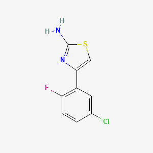 The synthesis of 4-(5-Chloro-2-fluorophenyl)-1,3-thiazol-2-amine typically involves the formation of the thiazole ring followed by the introduction of the chloro and fluoro substituents. One common method involves the cyclization of appropriate precursors under controlled conditions. For example, the reaction between 2-aminothiophenol and 5-chloro-2-fluorobenzoyl chloride can yield the desired thiazole compound. The reaction is usually carried out in the presence of a base such as triethylamine and a solvent like dichloromethane at low temperatures to ensure high yield and purity.