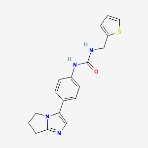When compared to similar compounds, 1-(4-(6,7-dihydro-5H-pyrrolo[1,2-a]imidazol-3-yl)phenyl)-3-(thiophen-2-ylmethyl)urea stands out due to its unique structural features and potential applications. Similar compounds may include other urea derivatives or compounds with similar heterocyclic cores, but the presence of the thiophen-2-ylmethyl group and the specific arrangement of the pyrrolo[1,2-a]imidazole ring contribute to its distinct properties.