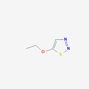 5-Ethoxy-1,2,3-thiadiazole is a distinct molecule within the larger family of thiadiazoles, which are five-membered heterocyclic compounds containing one sulfur and two nitrogen atoms. The 1,2,3-thiadiazole (B1210528) isomer is characterized by adjacent nitrogen atoms and is a stable, neutral, aromatic compound. cymitquimica.comchemicalbook.com The ethoxy group at the 5-position is a key substituent that influences the molecule's electronic properties and potential reactivity. While the broader 1,2,3-thiadiazole class has been the subject of extensive study, the specific research focus on this compound is more niche.