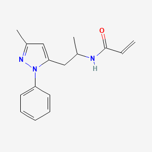 N-[1-(3-methyl-1-phenyl-1H-pyrazol-5-yl)propan-2-yl]prop-2-enamide is a chemical compound that belongs to the class of organic compounds known as pyrazoles. Pyrazoles are five-membered heterocyclic compounds containing two nitrogen atoms in the ring. This particular compound features a phenyl group attached to the pyrazole ring, which is further substituted with a methyl group and a prop-2-enamide moiety.