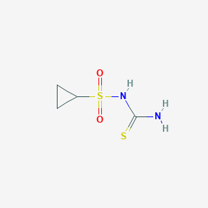 The synthesis of (Cyclopropanesulfonyl)thiourea typically involves the reaction of cyclopropanesulfonyl chloride with thiourea. The reaction is carried out in an appropriate solvent, such as dichloromethane or acetonitrile, under controlled temperature conditions. The reaction proceeds via nucleophilic substitution, where the thiourea attacks the sulfonyl chloride, resulting in the formation of this compound .