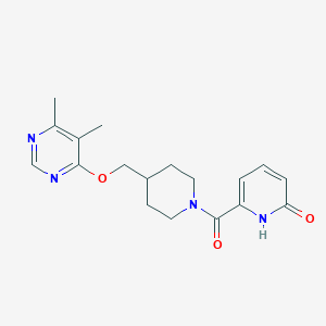 6-(4-(((5,6-dimethylpyrimidin-4-yl)oxy)methyl)piperidine-1-carbonyl)pyridin-2(1H)-one is a synthetic organic compound. Its unique structure makes it a point of interest in various scientific fields, including chemistry and medicinal research.