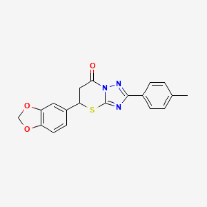 The compound 5-(benzo[d][1,3]dioxol-5-yl)-2-(p-tolyl)-5H-[1,2,4]triazolo[5,1-b][1,3]thiazin-7(6H)-one is a member of the triazole-thiazine class of compounds. This class has garnered attention due to its diverse biological activities, including antiviral, anticancer, and antimicrobial properties. Understanding the biological activity of this specific compound is crucial for its potential applications in medicinal chemistry.