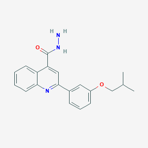 The synthesis of 2-(3-Isobutoxyphenyl)quinoline-4-carbohydrazide involves several steps. Typically, the synthetic route includes the reaction of 3-isobutoxybenzaldehyde with 2-aminobenzophenone to form an intermediate, which is then cyclized to produce the quinoline derivative. The final step involves the reaction of the quinoline derivative with hydrazine hydrate to form the carbohydrazide . The reaction conditions often include the use of solvents like ethanol and catalysts to facilitate the reactions .