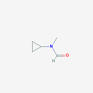 The mechanism of action of N-cyclopropyl-N-methylformamide involves its interaction with specific molecular targets. The compound can act as a nucleophile or electrophile in various reactions, facilitating the formation of new chemical bonds. Its unique structure allows it to participate in cycloaddition reactions, leading to the formation of complex molecular architectures. The pathways involved often include the activation of the formamide group, followed by nucleophilic attack or electrophilic addition .