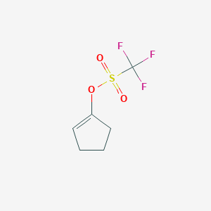 The mechanism by which cyclopent-1-en-1-yl trifluoromethanesulfonate exerts its effects involves its reactivity as an electrophile. The trifluoromethanesulfonate group is a good leaving group, making the compound highly reactive in nucleophilic substitution reactions. This reactivity allows it to interact with various molecular targets, including nucleophiles in biological systems and reactive intermediates in chemical synthesis .