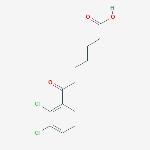 As a chemical intermediate, 7-(2,3-Dichlorophenyl)-7-oxoheptanoic acid serves as a foundational element in the construction of more elaborate organic structures. Its value lies in its dual reactivity: the carboxylic acid group can undergo esterification or amidation, while the ketone functionality can be targeted for various transformations.