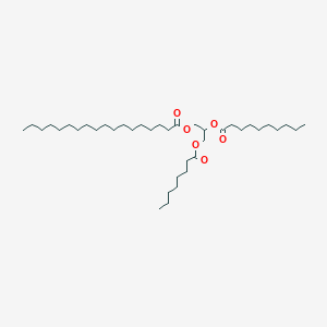 Octadecanoic acid, 2-[(1-oxodecyl)oxy]-3-[(1-oxooctyl)oxy]propyl ester, also known as a triacylglycerol, is a complex organic compound with the molecular formula and a molecular weight of 639.0 g/mol. This compound consists of octanoic acid, decanoic acid, and stearic acid at the sn-1, sn-2, and sn-3 positions respectively. Its unique structure contributes to various biological activities and applications in scientific research and industry.