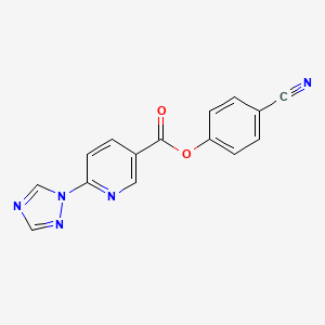 The mechanism of action of 4-cyanophenyl 6-(1H-1,2,4-triazol-1-yl)nicotinate involves its interaction with specific molecular targets. The triazole ring can bind to enzymes or receptors, inhibiting their activity or modulating their function. This interaction can lead to various biological effects, such as inhibition of cell proliferation in cancer cells or disruption of fungal cell membranes .