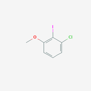 Current documented research on this compound is primarily centered on its synthesis and subsequent utilization in palladium-catalyzed reactions for the construction of complex heterocyclic frameworks. A key synthetic route to this compound involves the directed ortho-metalation of 3-chloroanisole (B146291). Specifically, a deprotonative zincation using a TMP-zincate (lithium di-tert-butyltetramethylpiperidinozincate) regioselectively activates the C2 position, which is the position between the methoxy (B1213986) and chloro groups. Subsequent electrophilic trapping of the resulting arylzincate intermediate with molecular iodine affords this compound in good yields. beilstein-journals.org