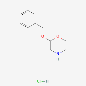 Morpholine compounds have applications in diverse chemical and biological fields, including uses as pharmaceutical intermediates, antitumor agents, and anticonvulsants . Morpholine, 2-(phenylmethoxy)-, hydrochloride, a specific morpholine compound, can be synthesized using morpholine and halogenated hydrocarbons . The presence of a morpholine ring on a heterocyclic system can lead to enhanced pharmacological activities .