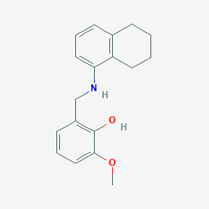 The synthesis of 2-Methoxy-6-[(5,6,7,8-tetrahydronaphthalen-1-ylamino)methyl]phenol involves several steps. One common method includes the reaction of 2-methoxyphenol with 5,6,7,8-tetrahydronaphthalen-1-ylamine in the presence of a suitable catalyst . The reaction conditions typically involve heating the mixture to a specific temperature and maintaining it for a certain period to ensure complete reaction. Industrial production methods may involve large-scale synthesis using optimized reaction conditions to maximize yield and purity .