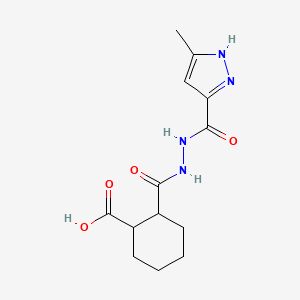 2-(2-(3-methyl-1H-pyrazole-5-carbonyl)hydrazinecarbonyl)cyclohexanecarboxylic acid