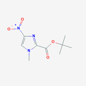 The synthesis of tert-butyl 1-methyl-4-nitro-1H-imidazole-2-carboxylate can be achieved through several methods. One common method involves the reaction of 1-methyl-4-nitroimidazole with tert-butyl chloroformate in the presence of a base such as triethylamine. The reaction is typically carried out in an organic solvent like dichloromethane at room temperature. The product is then purified using standard techniques such as column chromatography.