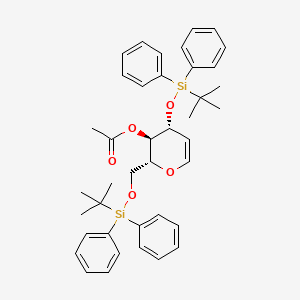 4-O-Acetyl-3,6-di-O-tert-butyldiphenylsilyl-D-glucal is a chemically modified derivative of D-glucal, a cyclic enol ether carbohydrate. This compound features two tert-butyldiphenylsilyl (TBDPS) groups at the 3- and 6-hydroxyl positions and an acetyl group at the 4-hydroxyl position. These protecting groups enhance stability and control reactivity during synthetic processes, making it a critical intermediate in carbohydrate chemistry and glycosylation reactions .