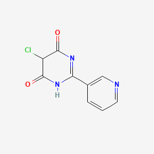 5-Chloro-2-(3-pyridinyl)-4,6(1H,5H)-pyrimidinedione is a pyrimidinedione derivative characterized by a chlorine atom at position 5 and a 3-pyridinyl group at position 2. Pyrimidinediones are heterocyclic compounds with a six-membered ring containing two nitrogen atoms and two ketone groups. Its synthetic pathway may involve nucleophilic substitution or condensation reactions similar to methods described for related compounds .
