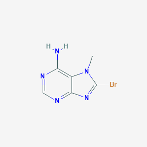 8-Bromo-7-methylpurin-6-amine (CAS: 6974-78-3) is a purine derivative characterized by a bromine atom at position 8 and a methyl group at position 7 of the purine scaffold. Its molecular formula is C5H4BrN5, with a molecular weight of 214.02 g/mol . The compound is typically stored under inert atmospheres at 2–8°C to maintain stability due to its sensitivity to light and air . While the provided evidence primarily refers to 8-bromo-7H-purin-6-amine (lacking the methyl group at position 7), this article assumes the methyl substitution at position 7 as per the query, extrapolating comparisons based on structural analogs from the literature.
