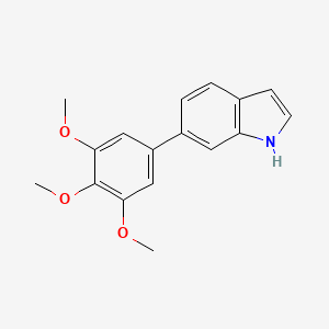 The mechanism of action of 6-(3,4,5-trimethoxyphenyl)-1H-indole involves its interaction with various molecular targets. The trimethoxyphenyl group is known to inhibit enzymes such as tubulin, heat shock protein 90, and thioredoxin reductase . These interactions disrupt cellular processes, leading to the compound’s observed biological effects. The indole core also contributes to its ability to bind to specific receptors and enzymes, further enhancing its pharmacological profile .