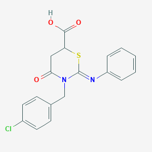 (2Z)-3-(4-chlorobenzyl)-4-oxo-2-(phenylimino)-1,3-thiazinane-6-carboxylic acid is a useful research compound. Its molecular formula is C18H15ClN2O3S and its molecular weight is 374.8g/mol. The purity is usually 95%.