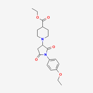 Ethyl 1-[1-(4-ethoxyphenyl)-2,5-dioxopyrrolidin-3-yl]piperidine-4-carboxylate is a complex organic compound with potential applications in various fields of scientific research. This compound features a piperidine ring, a pyrrolidinone moiety, and an ethoxyphenyl group, making it a unique structure with diverse chemical properties.