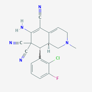 InChI=1S/C19H15ClFN5/c1-26-6-5-11-13(7-22)18(25)19(9-23,10-24)16(14(11)8-26)12-3-2-4-15(21)17(12)20/h2-5,14,16H,6,8,25H2,1H3/t14-,16+/m1/s1 |