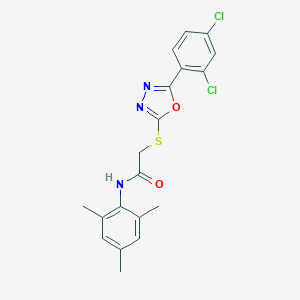 2-{[5-(2,4-dichlorophenyl)-1,3,4-oxadiazol-2-yl]sulfanyl}-N-mesitylacetamide is a useful research compound. Its molecular formula is C19H17Cl2N3O2S and its molecular weight is 422.3g/mol. The purity is usually 95%.