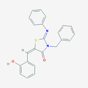 3-Benzyl-5-(2-hydroxybenzylidene)-2-(phenylimino)-1,3-thiazolidin-4-one is a useful research compound. Its molecular formula is C23H18N2O2S and its molecular weight is 386.5g/mol. The purity is usually 95%.