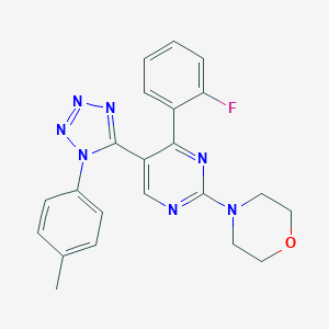 4-{4-(2-fluorophenyl)-5-[1-(4-methylphenyl)-1H-tetraazol-5-yl]-2-pyrimidinyl}morpholine is a useful research compound. Its molecular formula is C22H20FN7O and its molecular weight is 417.4g/mol. The purity is usually 95%.