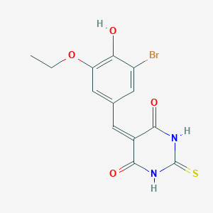 5-(3-bromo-5-ethoxy-4-hydroxybenzylidene)-2-thioxodihydro-4,6(1H,5H)-pyrimidinedione is a useful research compound. Its molecular formula is C13H11BrN2O4S and its molecular weight is 371.21g/mol. The purity is usually 95%.