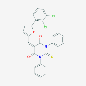 5-{[5-(2,3-dichlorophenyl)-2-furyl]methylene}-1,3-diphenyl-2-thioxodihydro-4,6(1H,5H)-pyrimidinedione is a useful research compound. Its molecular formula is C27H16Cl2N2O3S and its molecular weight is 519.4g/mol. The purity is usually 95%.