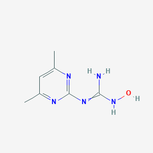 The synthesis of N-(4,6-dimethylpyrimidin-2-yl)-N''-hydroxyguanidine typically involves the reaction of 4,6-dimethylpyrimidine-2-carbaldehyde with hydroxylamine hydrochloride under basic conditions. The reaction is carried out in a solvent such as ethanol or methanol, and the mixture is heated to reflux for several hours. After completion, the product is isolated by filtration and purified by recrystallization.
