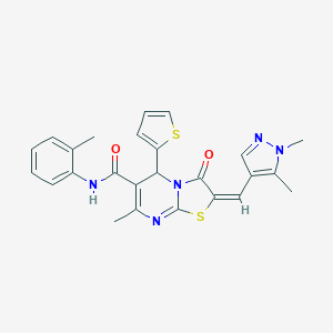 (2E)-2-[(1,5-dimethylpyrazol-4-yl)methylidene]-7-methyl-N-(2-methylphenyl)-3-oxo-5-thiophen-2-yl-5H-[1,3]thiazolo[3,2-a]pyrimidine-6-carboxamide |