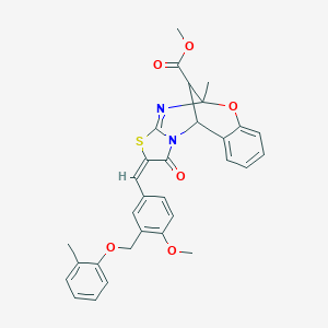 methyl (13E)-13-[[4-methoxy-3-[(2-methylphenoxy)methyl]phenyl]methylidene]-9-methyl-14-oxo-8-oxa-12-thia-10,15-diazatetracyclo[7.6.1.02,7.011,15]hexadeca-2,4,6,10-tetraene-16-carboxylate |