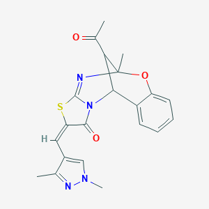 16-ACETYL-13-[(E)-1-(1,3-DIMETHYL-1H-PYRAZOL-4-YL)METHYLIDENE]-9-METHYL-8-OXA-12-THIA-10,15-DIAZATETRACYCLO[7.6.1.0~2,7~.0~11,15~]HEXADECA-2,4,6,10-TETRAEN-14-ONE