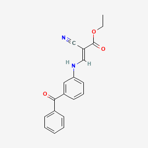 The synthesis of 3-(3-Benzoyl-phenylamino)-2-cyano-acrylic acid ethyl ester typically involves the reaction of 3-benzoyl aniline with ethyl cyanoacetate under specific conditions. The reaction is usually carried out in the presence of a base such as sodium ethoxide or potassium carbonate, which facilitates the nucleophilic attack of the cyano group on the benzoyl aniline. The reaction mixture is then heated to promote the formation of the desired product.