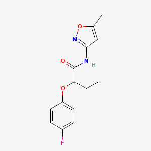 2-(4-fluorophenoxy)-N-(5-methyl-1,2-oxazol-3-yl)butanamide is a synthetic organic compound that has garnered interest in various scientific fields due to its unique chemical structure and potential applications. This compound features a fluorophenoxy group, an oxazole ring, and a butanamide backbone, which collectively contribute to its distinctive properties.