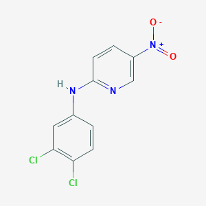 The synthesis of N-(3,4-dichlorophenyl)-5-nitropyridin-2-amine typically involves the reaction of 3,4-dichloroaniline with 5-nitropyridine-2-amine under specific conditions. One common method is the nucleophilic aromatic substitution reaction, where the amine group of 3,4-dichloroaniline attacks the nitropyridine ring, resulting in the formation of the desired product. The reaction is usually carried out in the presence of a base, such as potassium carbonate, and a solvent, such as dimethylformamide, at elevated temperatures.