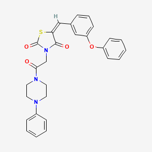 3-[2-oxo-2-(4-phenyl-1-piperazinyl)ethyl]-5-(3-phenoxybenzylidene)-1,3-thiazolidine-2,4-dione is a useful research compound. Its molecular formula is C28H25N3O4S and its molecular weight is 499.6 g/mol. The purity is usually 95%.