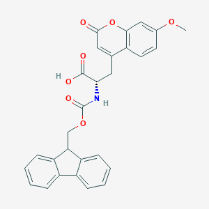 The mechanism of action of (S)-2-(9H-Fluoren-9-ylmethoxycarbonylamino)-3-(7-methoxy-2-oxo-2H-chromen-4-YL)-propionic acid depends on its specific application. In medicinal chemistry, it may interact with biological targets such as enzymes or receptors, modulating their activity. The fluorenyl and chromenyl groups can engage in π-π interactions, hydrogen bonding, and other non-covalent interactions, influencing the compound’s binding affinity and specificity.