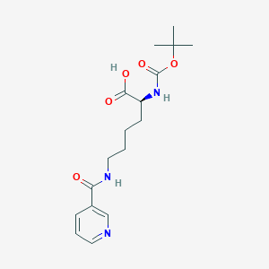The mechanism of action of Boc-Lys(Nicotinoyl)-OH involves its role as a protected lysine derivative. The Boc group protects the α-amino group from unwanted reactions, allowing selective reactions at the ε-amino group. The nicotinoyl group can participate in various biochemical interactions, including enzyme binding and inhibition. The compound’s effects are mediated through its interactions with specific molecular targets, such as enzymes and receptors, involved in lysine metabolism and signaling pathways.