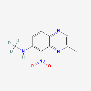 The mechanism of action of 2-Methyl-7-methylamino-d3-8-nitro-quinoxaline involves its interaction with specific molecular targets. The nitro group can undergo reduction to form reactive intermediates that interact with cellular components. The methylamino group may also play a role in binding to specific proteins or enzymes, affecting their activity and function .