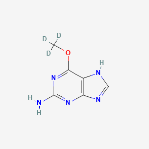 A1: 6-O-Methyl-d3-guanin wird typischerweise als interner Standard in quantitativen Analysen mittels Flüssigchromatographie-Massenspektrometrie (LC-MS) verwendet.[1] Aufgrund seiner strukturellen Ähnlichkeit mit dem endogenen Analyten 6-O-Methylguanin und seiner deuterierten Markierung ermöglicht es eine genaue Quantifizierung, indem es Variationen während der Probenvorbereitung und der instrumentellen Analyse korrigiert.[2][3]