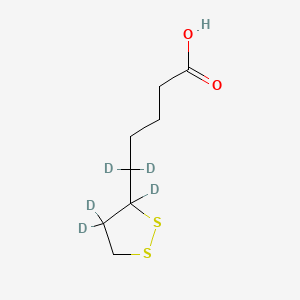 This compound possesses the molecular formula C8H9D5O2S2 and exhibits a molecular weight of 211.35 g/mol. The compound's systematic chemical name is 5,5-dideuterio-5-(3,4,4-trideuteriodithiolan-3-yl)pentanoic acid, which precisely describes the deuterium incorporation pattern throughout the molecular structure. The isotopic labeling strategy involves the strategic placement of five deuterium atoms at specific positions within the lipoic acid framework, specifically at the 5-position of the pentanoic acid chain and within the dithiolane ring system.