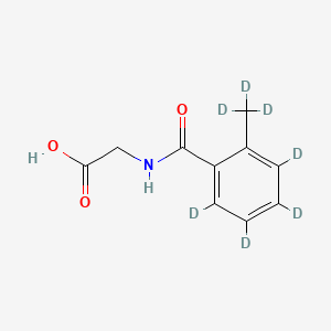 2-Methyl Hippuric Acid-d7 (2-MHA-d7) is a deuterated derivative of 2-Methyl Hippuric Acid, primarily recognized as a metabolite of xylene, an aromatic hydrocarbon commonly used in industrial applications. This compound has gained attention in toxicology and metabolic studies due to its role as a biomarker for xylene exposure and its involvement in various biochemical pathways.
