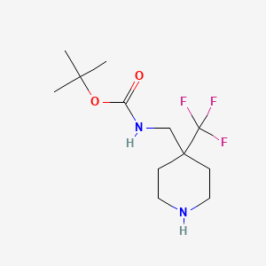 The mechanism of action of (4-Trifluoromethyl-piperidin-4-ylmethyl)-carbamic acid tert-butyl ester depends on its specific application. In medicinal chemistry, it may act as a prodrug, releasing the active compound upon metabolic conversion. The trifluoromethyl group can enhance the lipophilicity and metabolic stability of the compound, facilitating its interaction with biological targets such as enzymes or receptors.