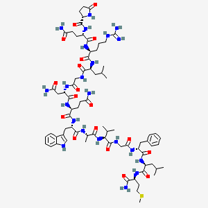 CC(C)CC(C(=O)NCC(=O)NC(CC(=O)N)C(=O)NC(CCC(=O)N)C(=O)NC(CC1=CNC2=CC=CC=C21)C(=O)NC(C)C(=O)NC(C(C)C)C(=O)NCC(=O)NC(CC3=CC=CC=C3)C(=O)NC(CC(C)C)C(=O)NC(CCSC)C(=O)N)NC(=O)C(CCCNC(=N)N)NC(=O)C(CCC(=O)N)NC(=O)C4CCC(=O)N4 | |