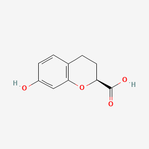 The synthesis of (S)-7-Hydroxychroman-2-carboxylic acid typically involves the use of chiral catalysts or starting materials to ensure the production of the desired enantiomer. One common method is the asymmetric synthesis starting from a suitable chroman precursor. The reaction conditions often include the use of solvents like dichloromethane or ethanol, and catalysts such as chiral ligands or enzymes to achieve high enantioselectivity.